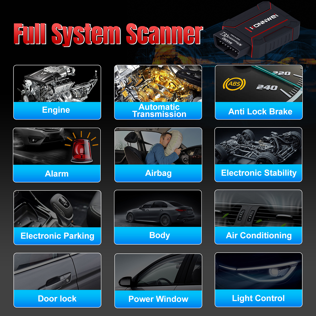 Автомобильный Bluetooth-сканер MAXOBD для всех систем OBD2 — это диагностический инструмент профессионального уровня, предназначенный для считывания и удаления кодов неисправностей, а также для мониторинга данных о транспортном средстве в режиме реального времени. Он способен считывать и удалять коды неисправностей всех основных систем, включая двигатель, подушки безопасности/SRS, трансмиссию, ABS, SAS, кондиционер, ACC, аудиосистему, фары, центральный замок, ESP, неисправности подвески и т. д. Подходит для следующих автомобилей: