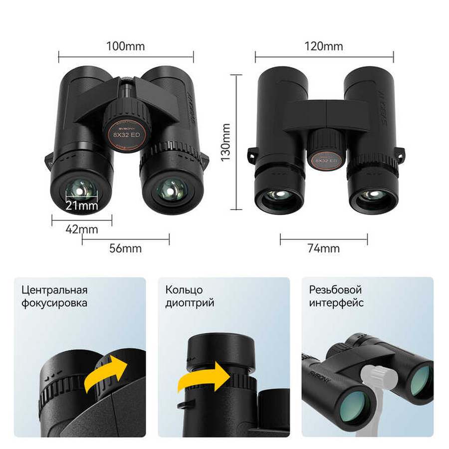 Бинокль SVBONY SV202 Pro 8x32 — компактный полевой бинокль с ED стеклом для охоты и наблюдения
