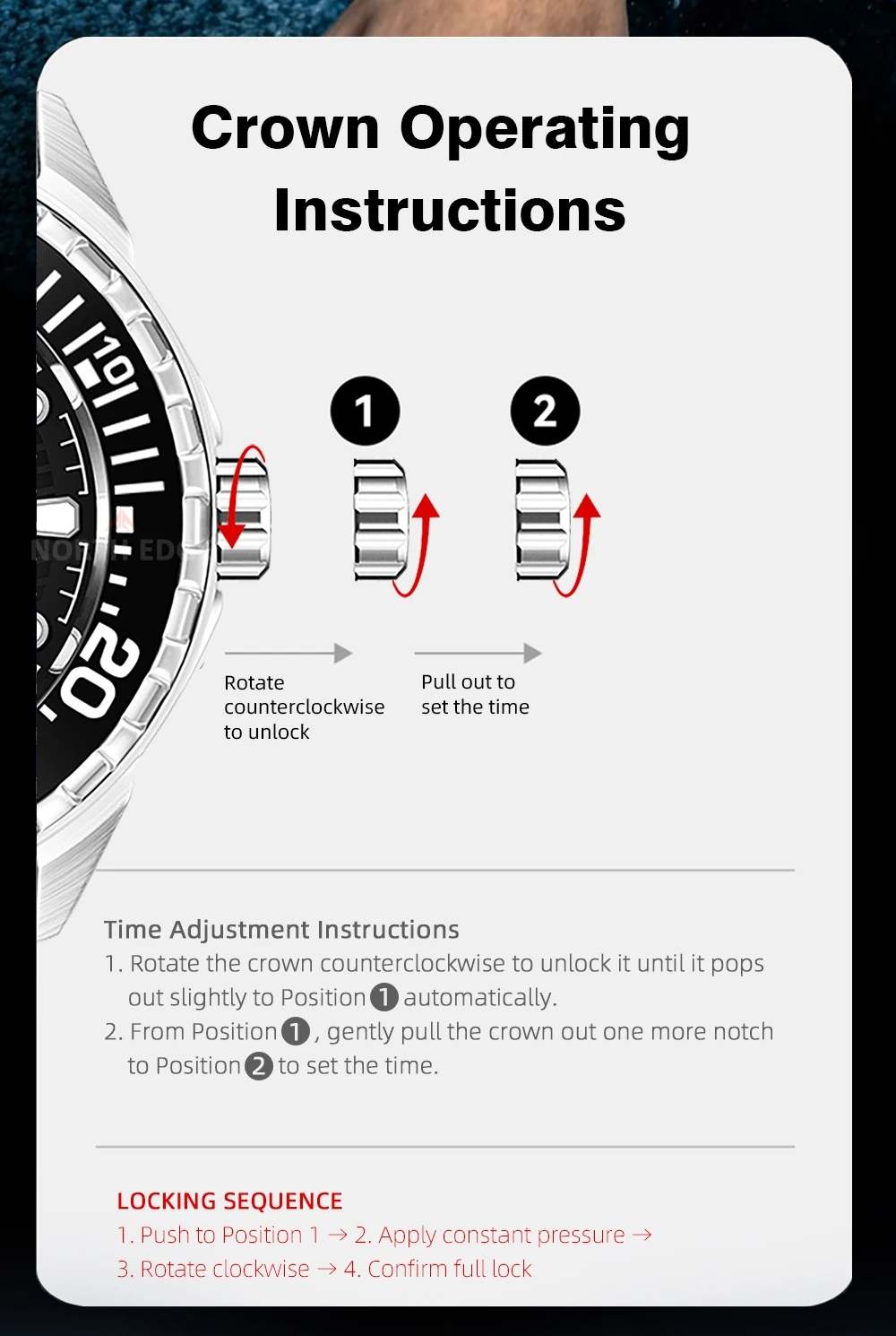 Часы Triton TI имеют водонепроницаемость до 300 м (30 ATM), что делает их подходящими для плавания, дайвинга и акваспорта. Прочный корпус из титанового сплава легкий по весу, но при этом более чем в 10 раз устойчивее к коррозии, чем обычный нержавеющий сталь.