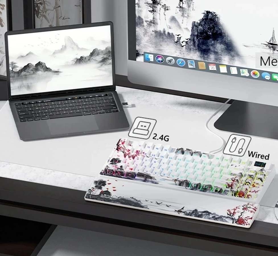 Polling rate 1000 Гц, отклик 0.2 мс и NKRO — без задержек в баталиях; TFT-экран для GIF/статусов, RGB-подсветка 16+ млн цветов с эффектами усиливает атмосферу. Совместима с Windows, macOS, Linux, Android/iOS.