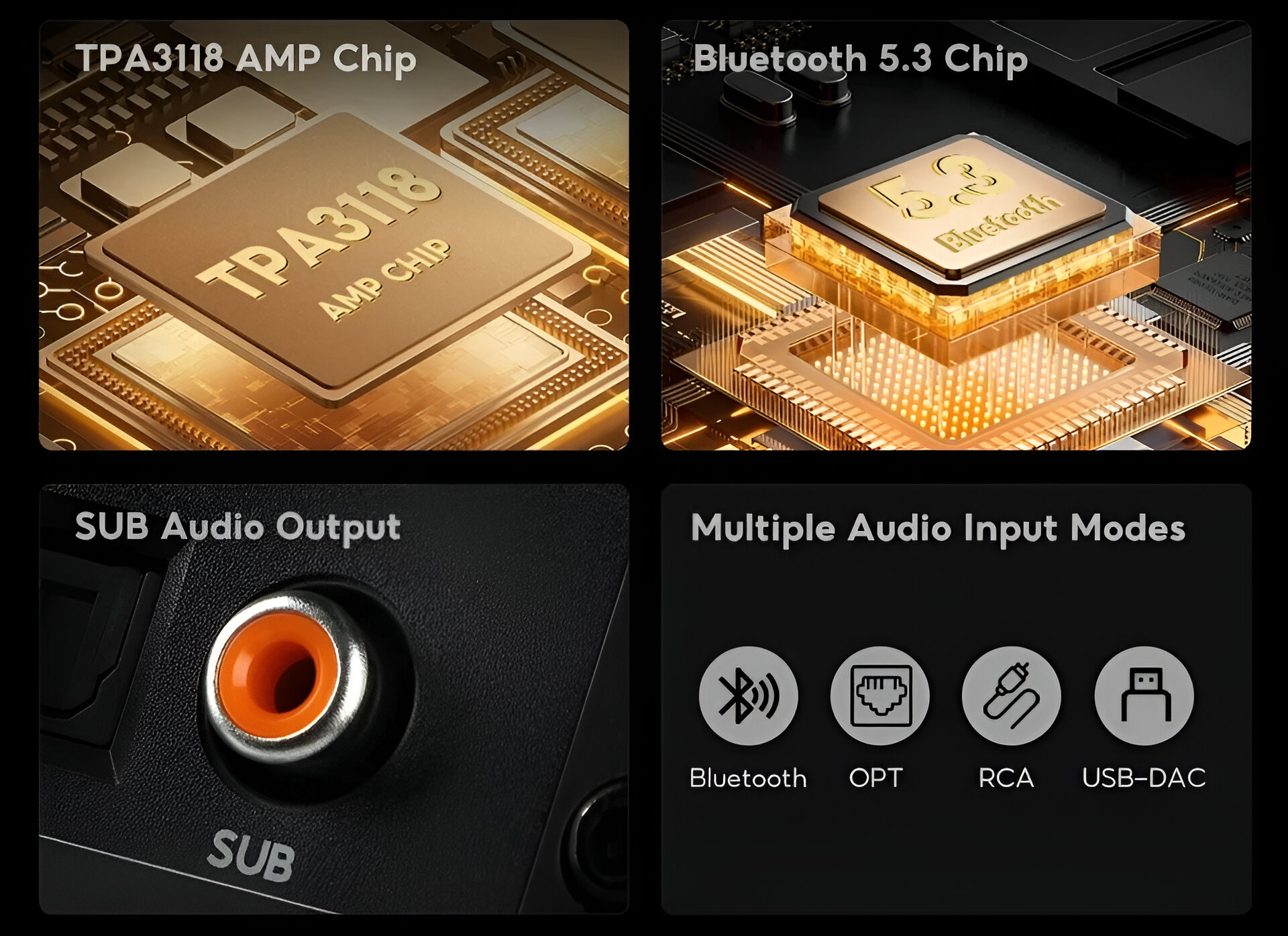 Аудиовход: Bluetooth / Оптический / DAC / RCA / USB