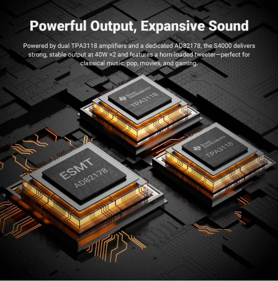 Колонки оснащены встроенным усилителем мощности, DSP-обработкой и поддерживают Bluetooth-подключение, что позволяет использовать их как акустику для ПК, ТВ, ноутбука и смартфона.