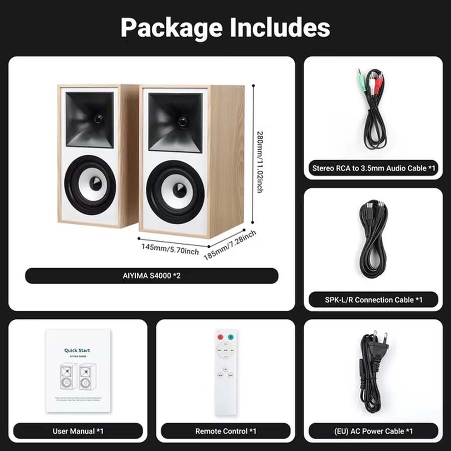 Активные полочные колонки Aiyima S4000 созданы для аудиофилов и домашнего кинотеатра, обеспечивают чистый стереозвук высокого качества и подходят для музыки, фильмов и работы за компьютером. Модель относится к классу Hi-Fi активных книжечных колонок с мощным басом и широким набором подключений.