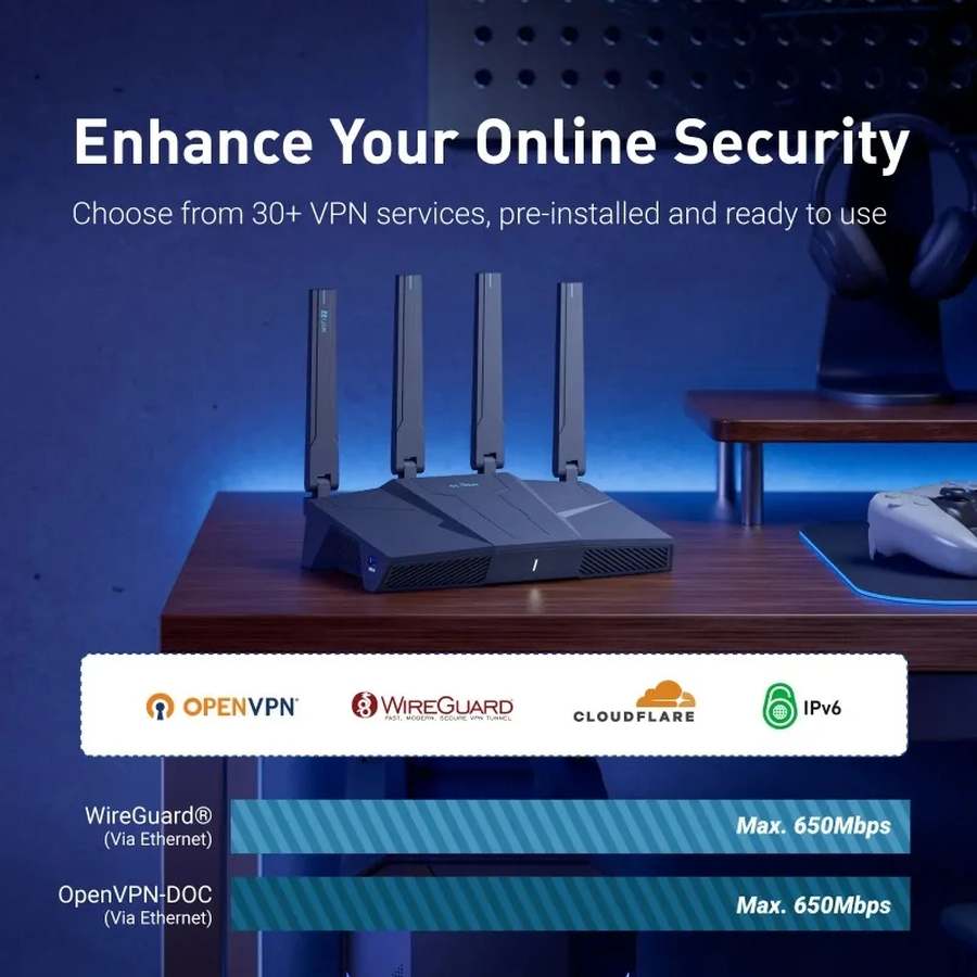 GL-iNet Flint 3e (GL-BE6500) использует Wi-Fi 7 с технологиями MLO, 4KQAM и Multi-RU для максимальной скорости и низкой задержки. Поддержка VPN (WireGuard до 680 Мбит/с, OpenVPN) шифрует трафик, а AdGuard Home, родительский контроль и файрвол блокируют угрозы. Идеален для стриминга 4K/8K, игр и умного дома. Поддерживает 100+ устройств без потери скорости, порт USB 3.0 для NAS/модемов, 2.5G-порты для проводных сетей