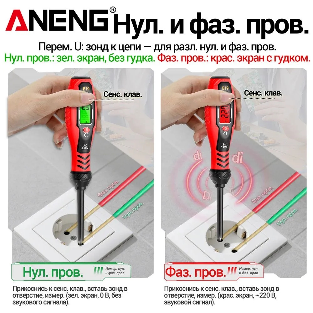 Определение фазного провода: различает нулевой и фазный провод по уровню электрического поля.