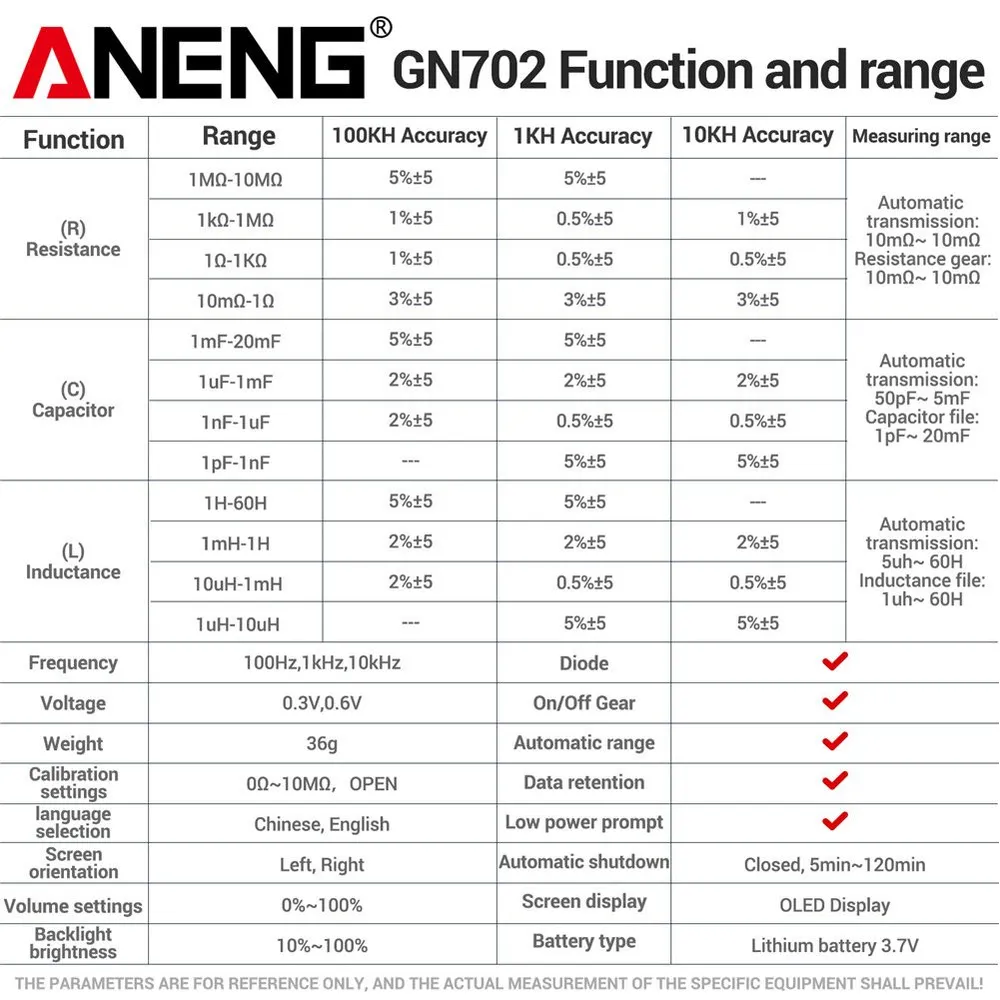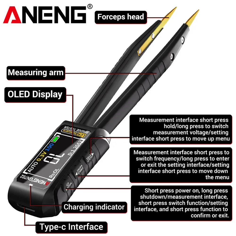 Aneng GN702 обладает интеллектуальной функцией распознавания резисторов, конденсаторов и индукторов, а также возможностью точного измерения их значений
