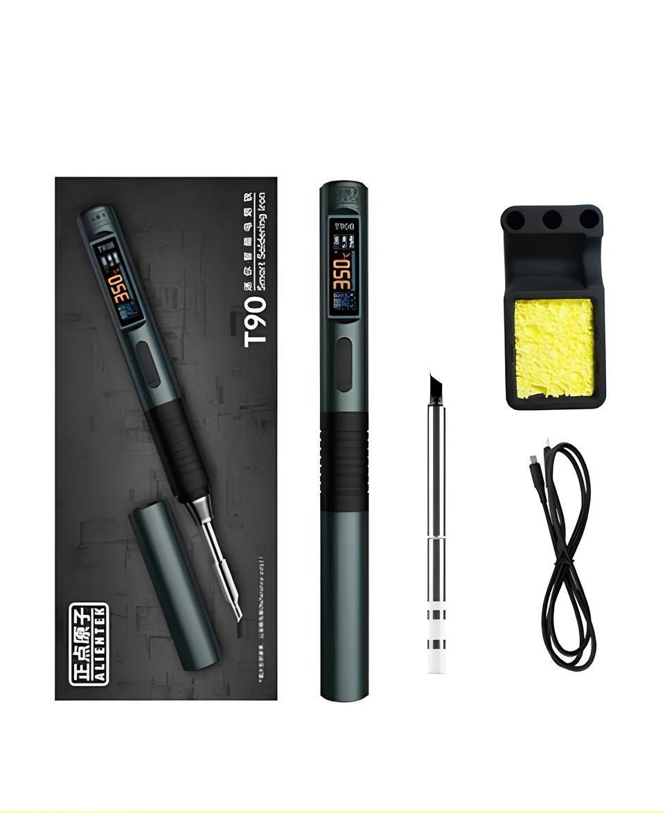 Паяльник Alientek T90C — современный цифровой паяльник с регулируемой температурой, созданный для профессиональных радиомонтажных работ и любительского ремонта электроники. Модель сочетает надёжность, точность контроля температуры и удобство эксплуатации. Подходит для пайки микросхем, SMD‑компонентов, проводов и других электронных элементов.