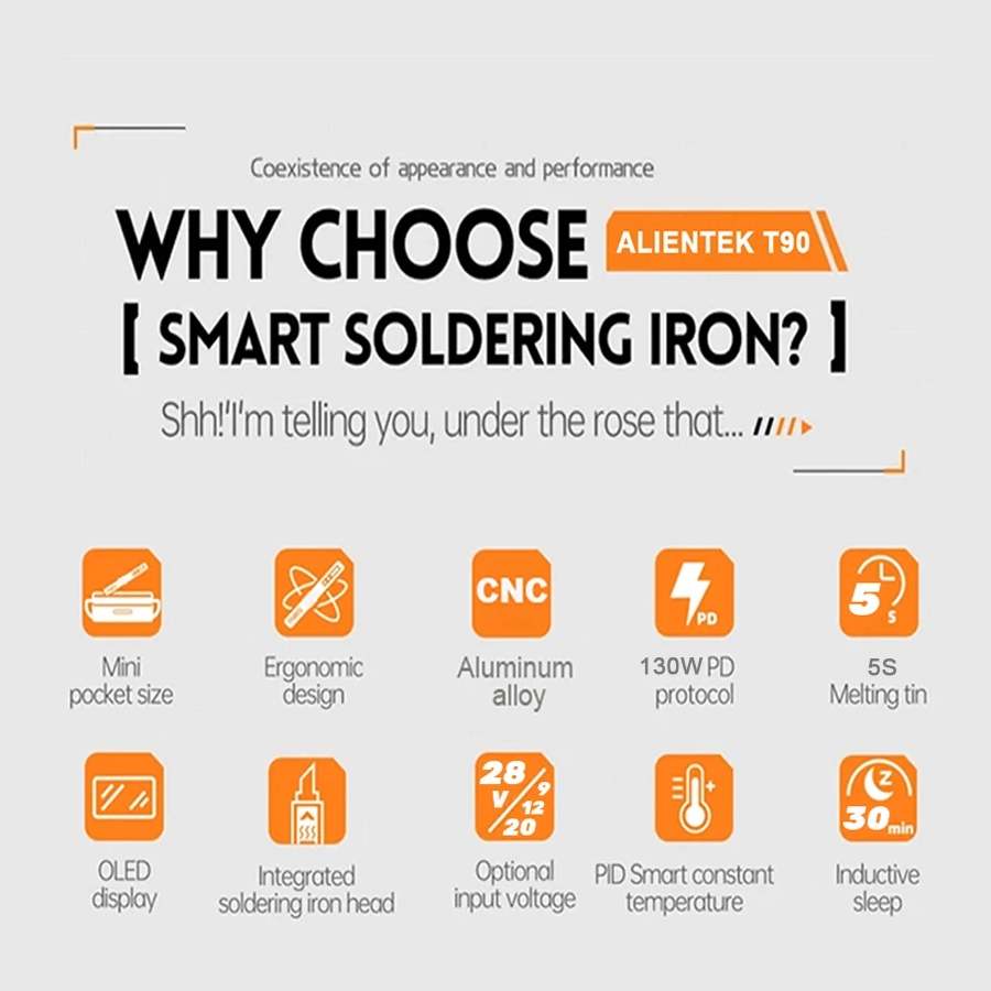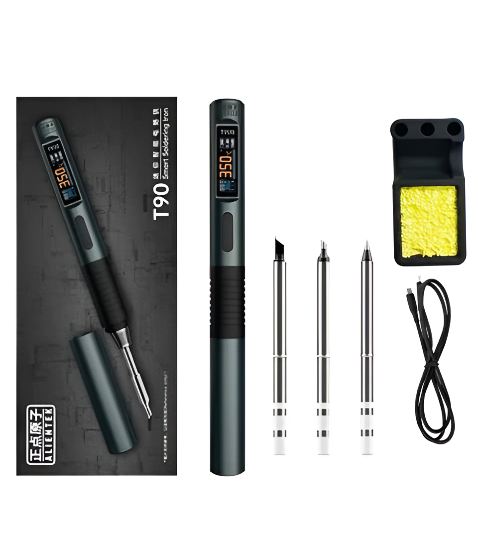 Паяльник Alientek T90C (дополнительные жала KU, I, BC3) — современный цифровой паяльник с регулируемой температурой, созданный для профессиональных радиомонтажных работ и любительского ремонта электроники. Модель сочетает надёжность, точность контроля температуры и удобство эксплуатации. Подходит для пайки микросхем, SMD‑компонентов, проводов и других электронных элементов.