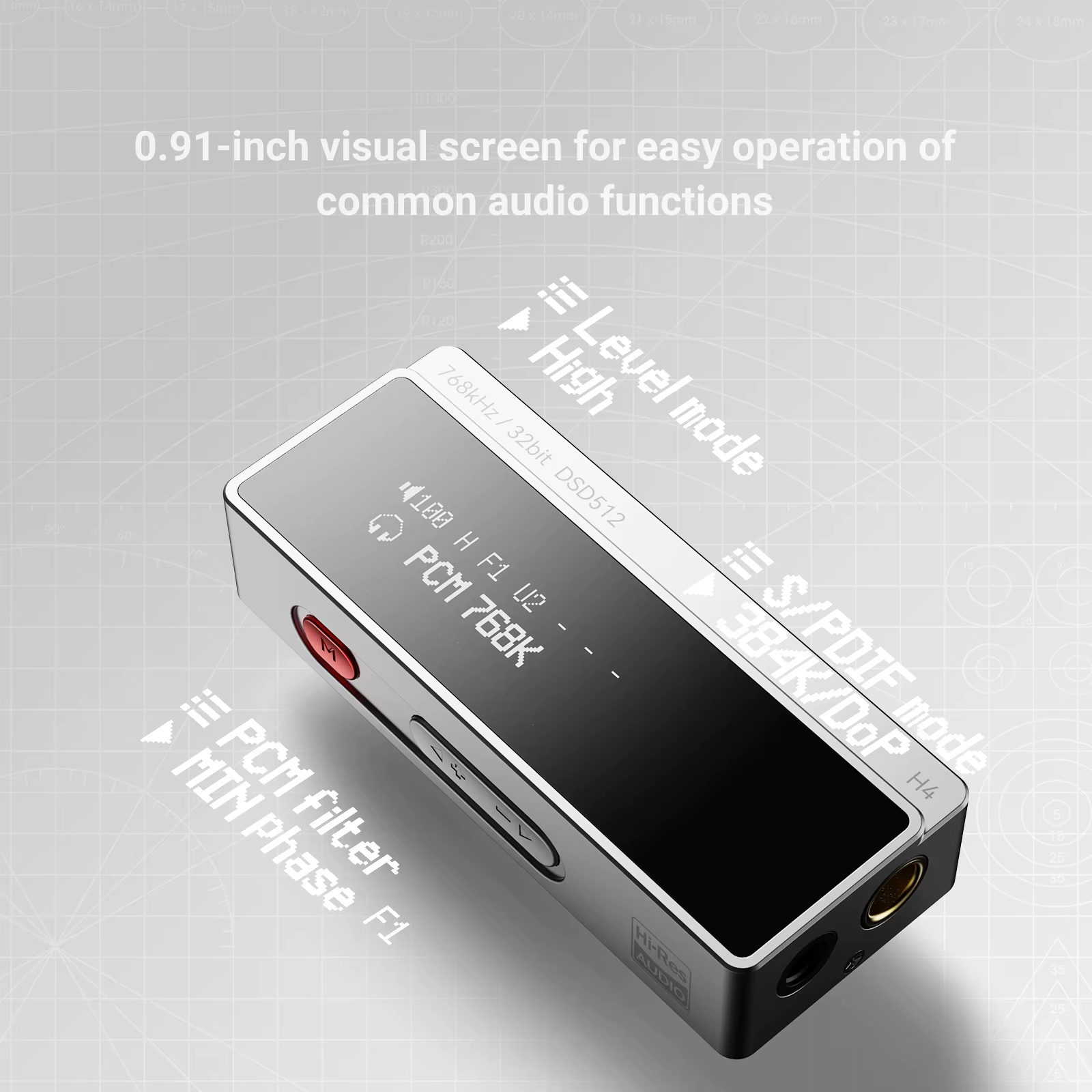 AIYIMA H4 поддерживает PCM до 32 бит/768 кГц и DSD512, раскрывая потенциал FLAC и Hi-Res треков. Балансный выход 4,4 мм выдает 240 мВт, 32 Ом, обычный 3,5 мм — 125 мВт, хватит для требовательных наушников. Физические кнопки, OLED-дисплей и 100 уровней громкости упрощают управление, включая переключение треков и цифровые фильтры для настройки тембра.