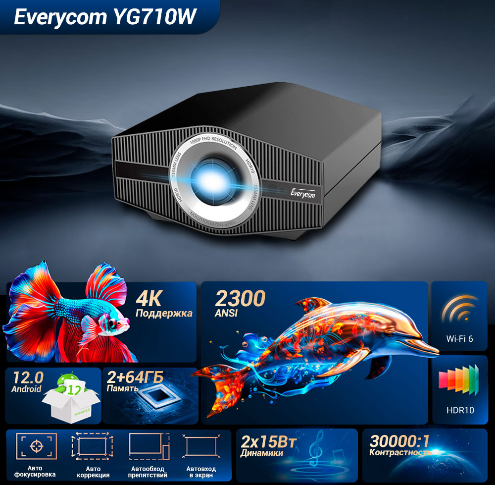 Проектор Everycom YG710W — это современное компактное устройство для домашнего и офисного использования. Он идеально подходит для просмотра фильмов, презентаций и игр с ярким изображением в формате HD. Благодаря светодиодному источнику света, проектор обеспечивает насыщенные цвета и четкость картинки. His простое подключение к различным мультимедийным устройствам делает Everycom YG710W универсальным решением для любого пользователя.