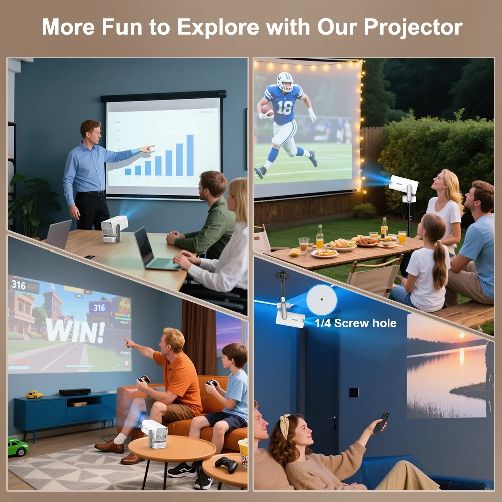 Thundeal TD80 Pro — современный Full HD‑проектор с уникальной возможностью свободного вращения на 270 ° . Эта особенность позволяет размещать устройство практически в любом положении: на столе, потолке, стене — и получать идеально выровненное изображение без искажений.