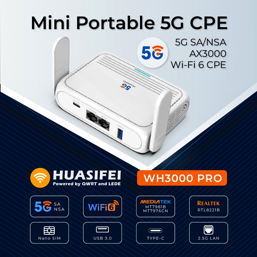 Мощный роутер Huasifei WH3000 PRO с WiFi 6 (AX3000) для дома, офиса, путешествий. Поддержка 5G-модемов через M.2 слот, сверхскоростной интернет до 3000 Мбит/с. Идеален для 4K-стриминга, игр, умного дома.