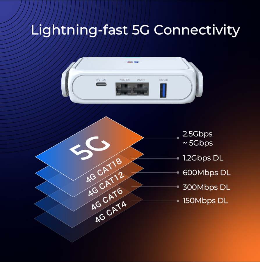 Порты: 1x LAN 2.5Gbps, 1x WAN 1Gbps, USB 3.0, M.2 (5G-модем)