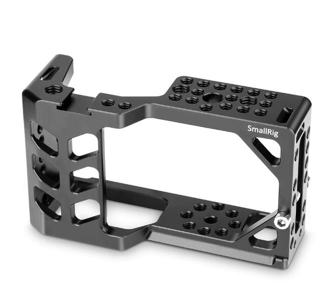 Каркас SmallRig 2012 предназначен для работы с камерами BMPCC и отличается своей продуманной и усовершенствованной конструкцией. Ручка каркаса теперь стала тоньше, что позволяет удобно захватить её и прочно удерживать во время даже самой динамичной съёмки. Рельсовая система Nato позволяет рукоятку с отверстиями и быстросъёмным механизмом 1688 и крепление для электронного видоискателя 1594. В нижней части каркаса расположена быстросъёмная площадка Arca, позволяющая установить основание Arca-Swiss с 15-миллиметровой стержневой опорой 1687. Отверстия для винтов М4 0.7 позволяют закрепить фиксатор для HDMI кабеля 1521. Для фиксации самого кабеля используются два винта М5. По бокам каркаса расположены отверстия для крепления ремней на плечо, позволяющими переносить каркас с собой где угодно. Камера и каркас фиксируются между собой при помощи винтов 1/4". На верхней части каркаса расположены отверстия для винтов с резьбой 1/4" и 3/8", которые используются для крепления верхней ручки с отверстиями с холодным башмаком 1638 и стабилизирующей ручки для камеры с креплением Nato 1955. Каркас не блокирует доступ к панели управления камеры, её кнопкам, портам, слотам и аккумуляторному отсеку. Холодный башмак позволяет подключить микрофон, установить фиксирующий кронштейн 7" 1497 и крепление для горячего башмака для камеры с дополнительным винтом 1/4" 761. Благодаря дополнительному месту рядом с аккумуляторным отсеком замена аккумулятора стала намного проще и занимает значительно меньше времени. Отверстия для винтов с резьбой 1/4" в нижней части каркаса позволяют зафиксировать быстросъёмные такие площадки Manfrotto, как быстросъёмная площадка с креплением типа ласточкин хвост 1280 и 1647. Отверстия для винтов с резьбой 1/4", расположенные на правой боковой поверхности, позволяют установить 15-миллиметровый микростержень (1.5") с винтом 1/4" 915, что обеспечит значительно большую устойчивость оборудования.