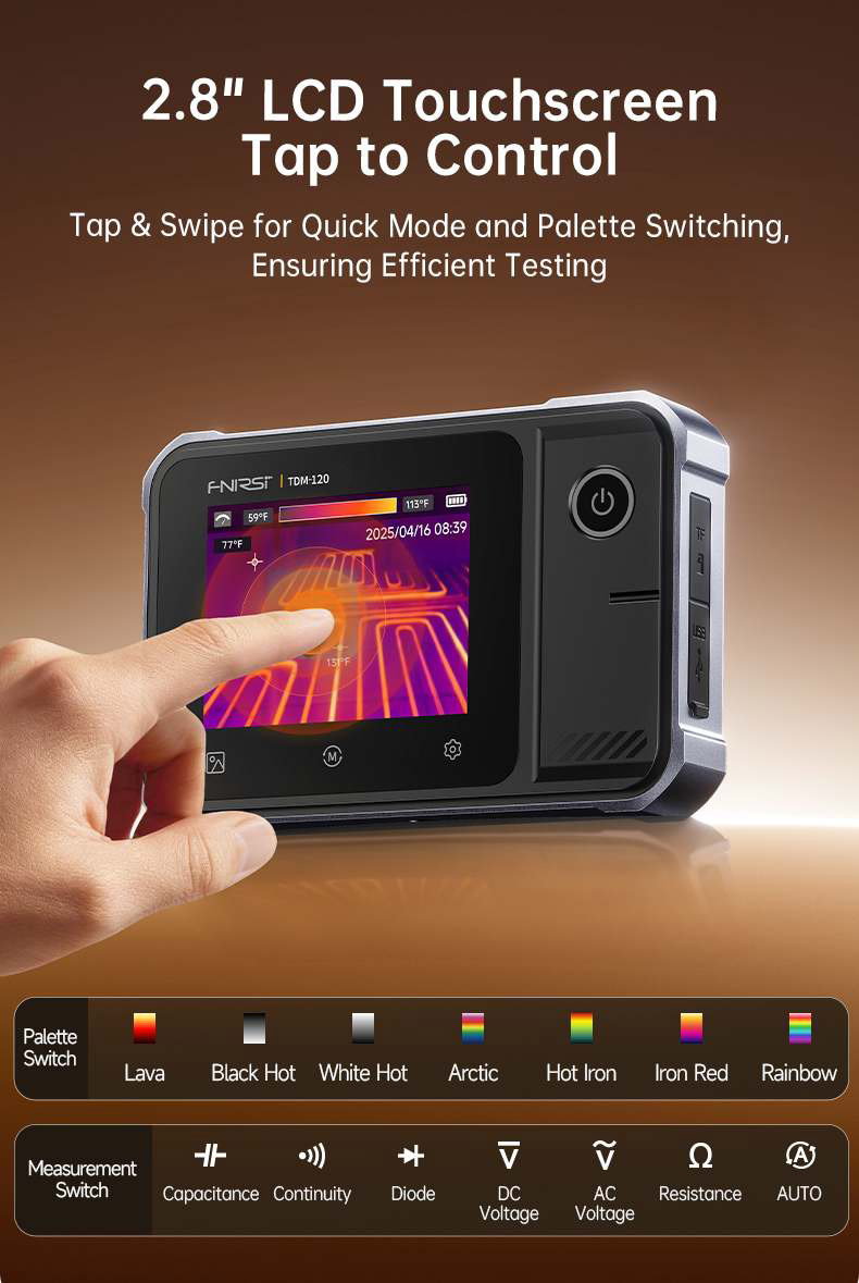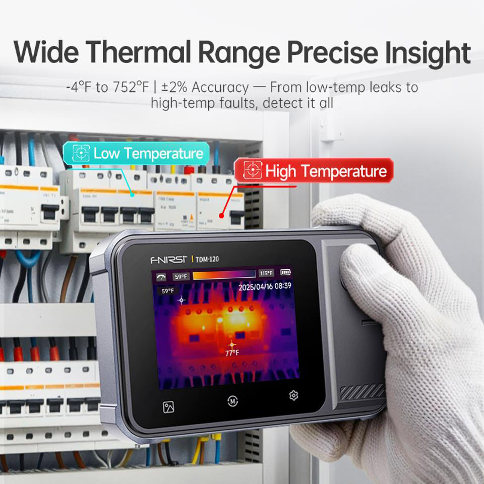 Тепловизор FNIRSI TDM-120 предназначен для профессиональной и бытовой диагностики температурных режимов. Он подходит для поиска перегрева в электрических щитах, проводах, розетках, системах отопления, а также для контроля теплопотерь в доме и оценки качества утепления.