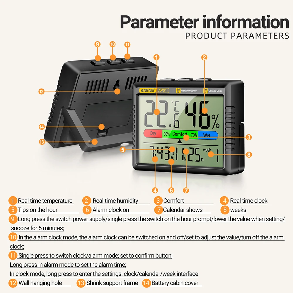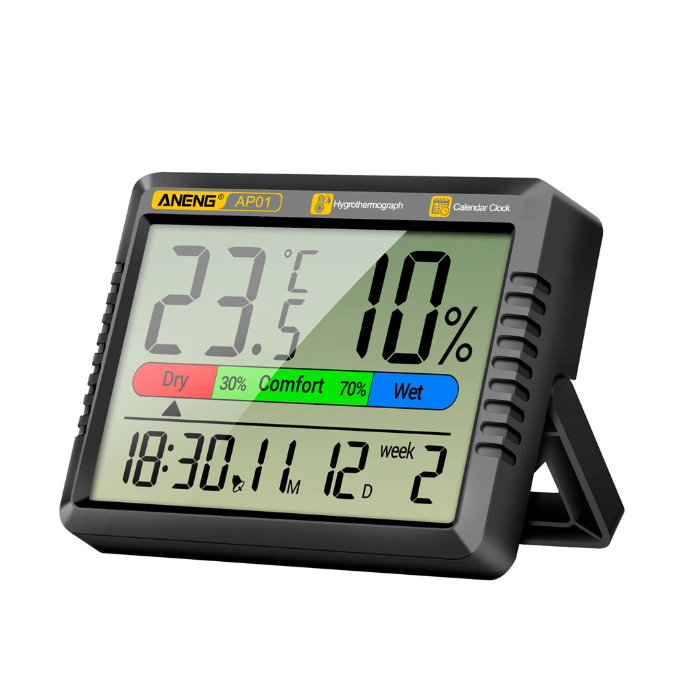 Термогигрометр ANENG AP01 - это измеритель параметров окружающей среды, который позволяет контролировать температуру и влажность воздуха в вашем доме или офисе.