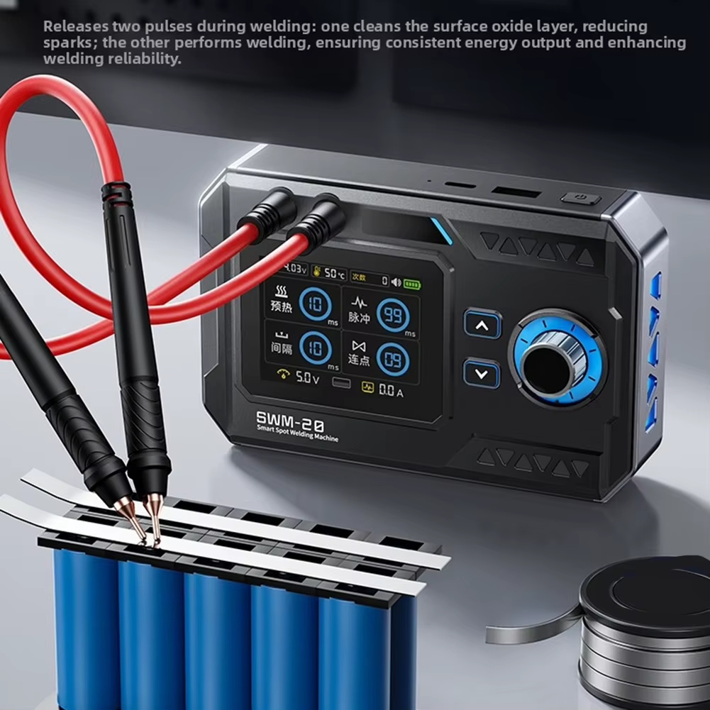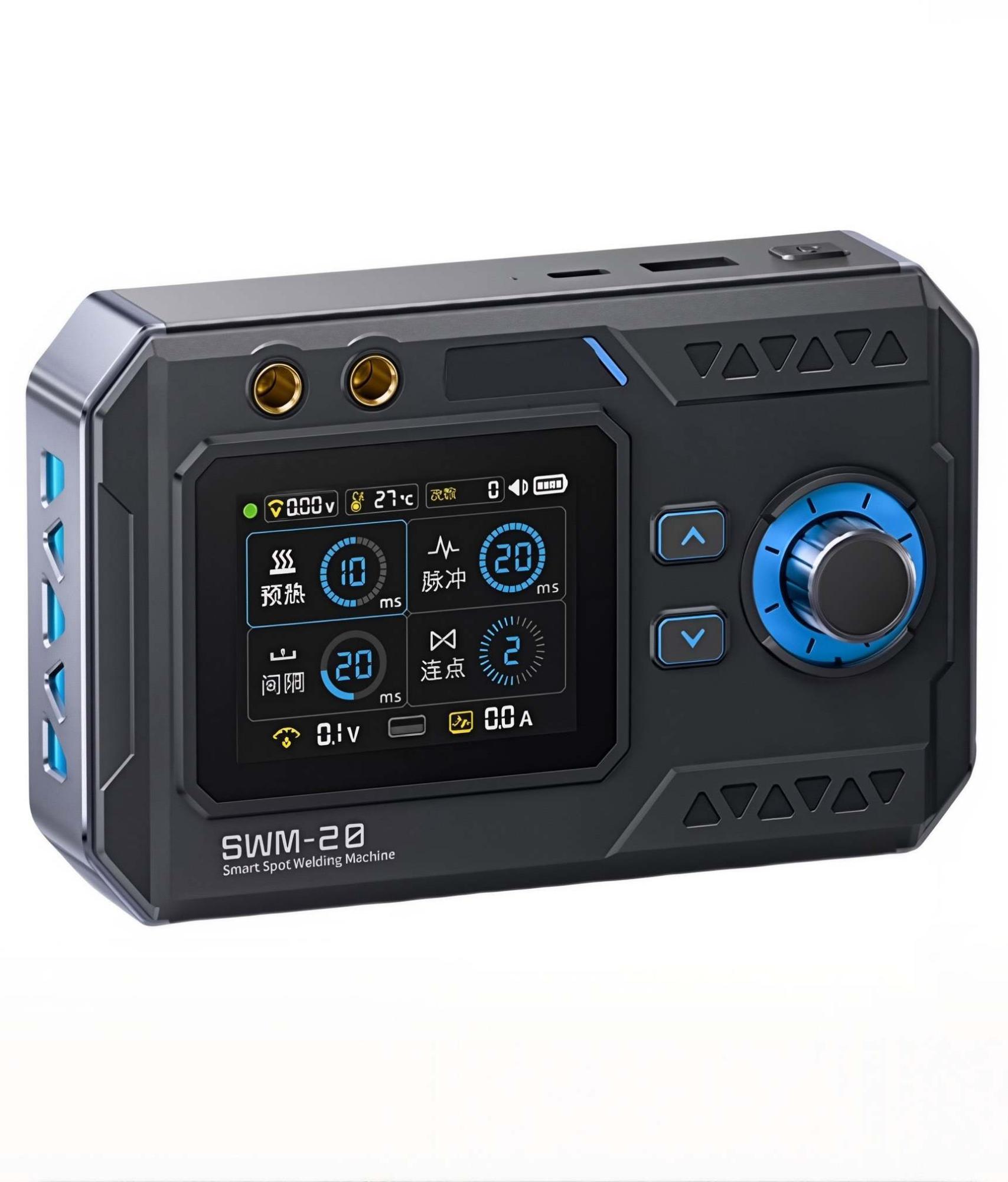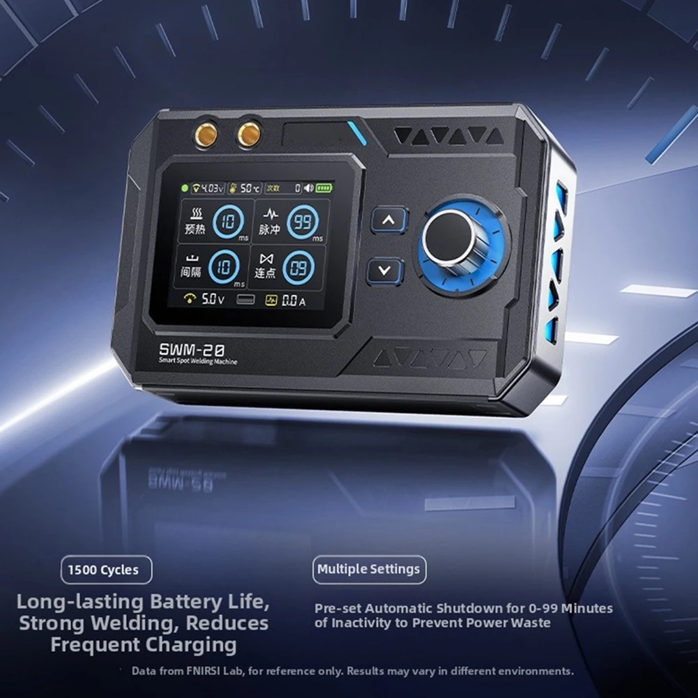Точечная сварка FNIRSI SWM-20 — профессиональный портативный аккумуляторный аппарат для точечной сварки литиевых батарей 18650, 21700, ремонта электроники и создания DIY power bank. Технология двойного импульса (до 1200 А пикового тока) обеспечивает чистые, прочные швы без искр и прожогов на никелированной стали, чистом никеле (0.1–0.5 мм), меди и алюминии. Компактный дизайн с мощным АКБ 5000 мАч позволяет выполнять до 500–700 циклов сварки на одном заряде, а также использовать устройство как универсальный power bank для смартфонов и гаджетов.