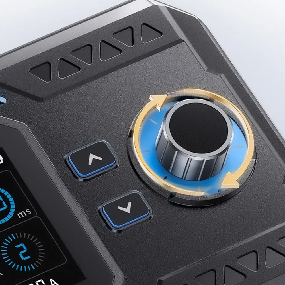 Интуитивное управление: Яркий 2.4" HD TFT-дисплей показывает заряд АКБ, текущий режим, количество импульсов. Энкодер обеспечивает мгновенную настройку без меню.
