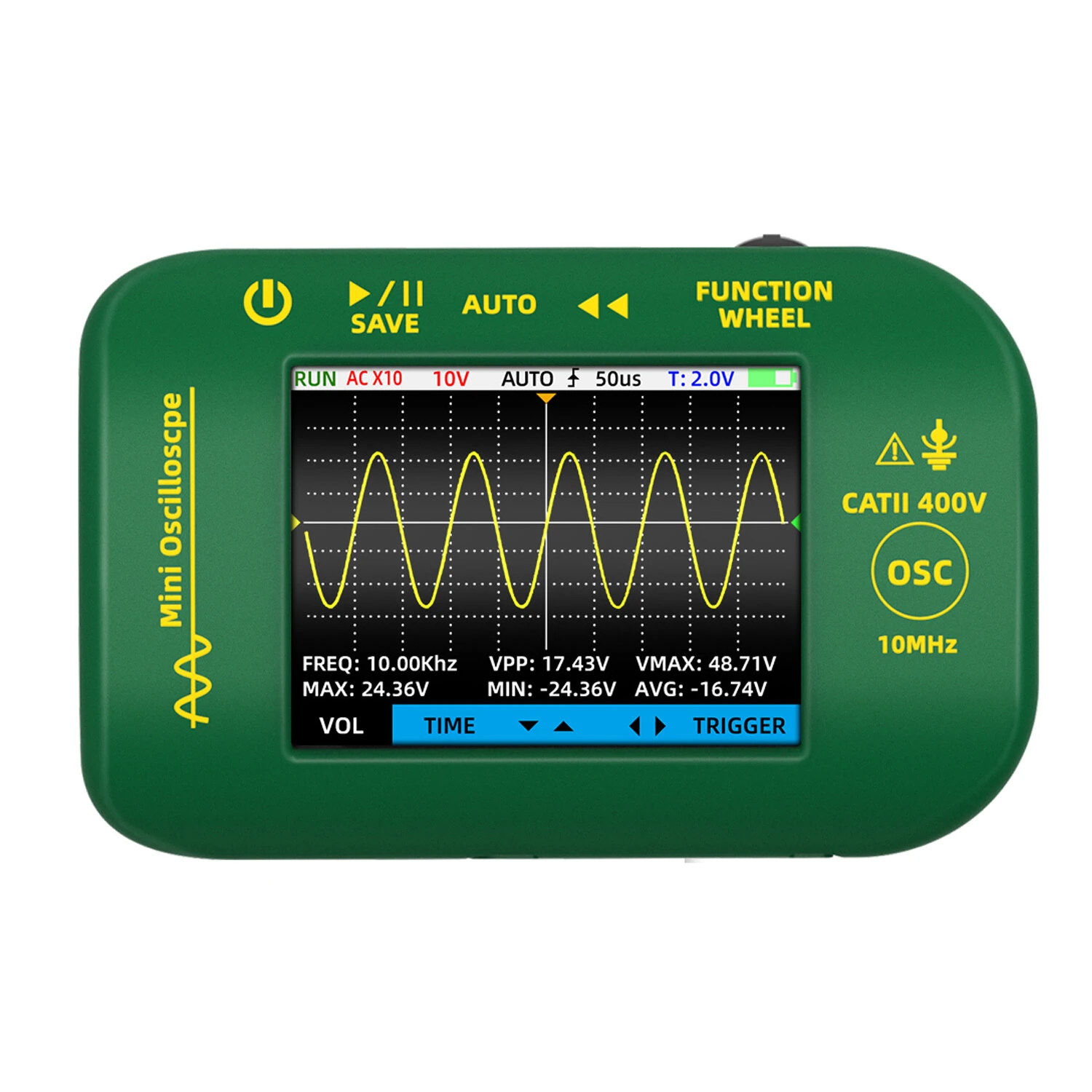 Осциллограф работать с максимальным входным напряжением ±40 В при ослаблении щупа x1 и ±400 В при ослаблении щупа x10 (постоянное + переменное напряжение) подходит для широкого спектра сценариев тестирования, обеспечивая безопасность и универсальность.