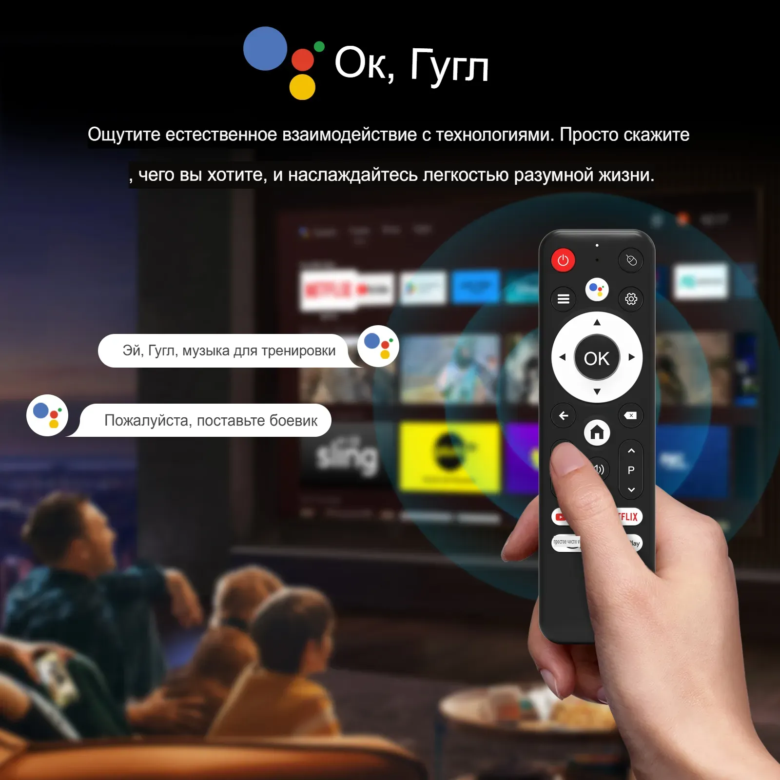ТВ-приставка, адаптер питания, кабель HDMI 2.0, STB-устройство, пульт дистанционного управления BT, руководство