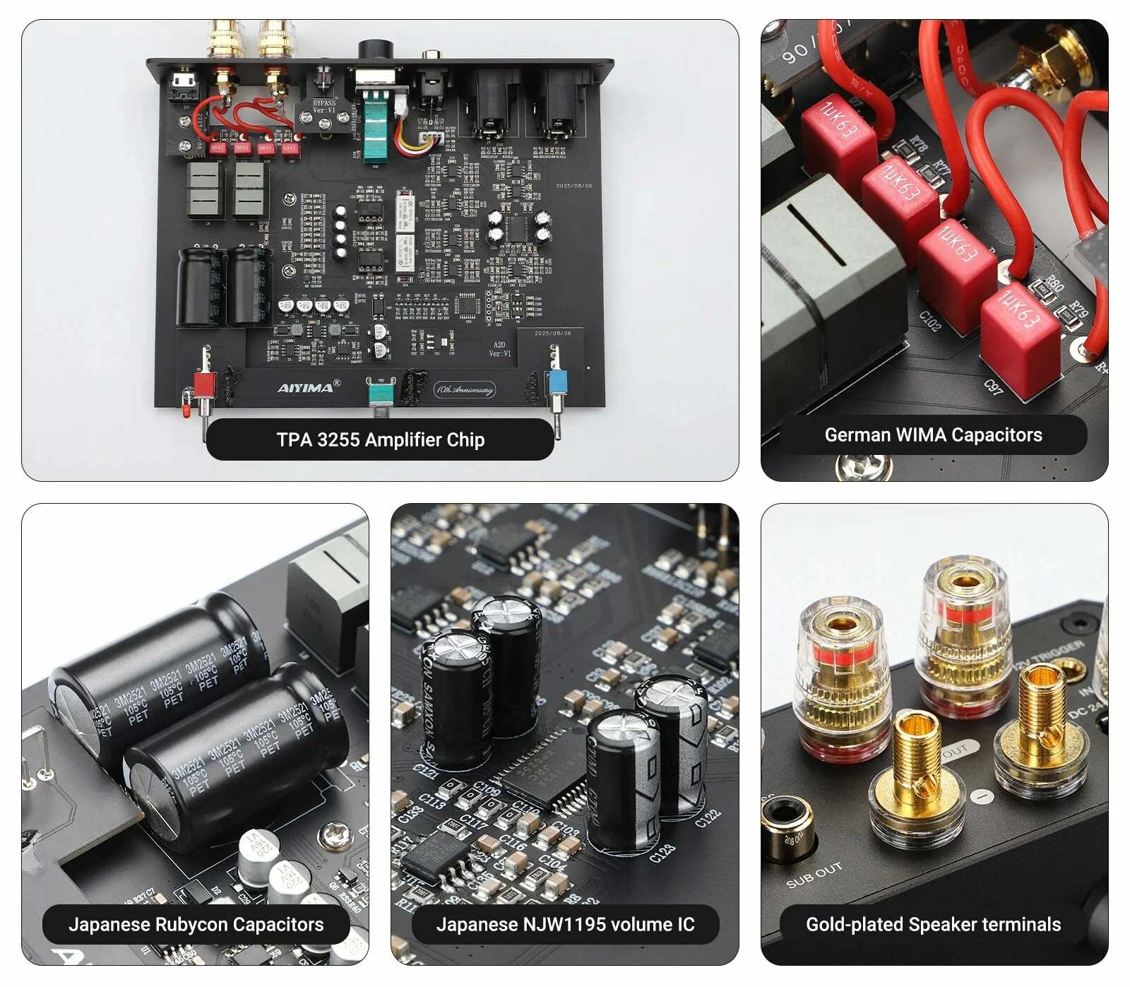 Aiyima A20 PFFB выполнен из качественных материалов, что гарантирует долгий срок службы. Усилитель оснащен защитой от перегрева и короткого замыкания, что делает его безопасным в эксплуатации. Компактный корпус позволяет разместить устройство даже в ограниченном пространстве.