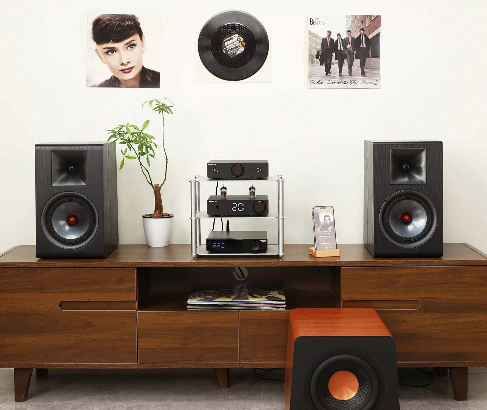Усилитель оснащен несколькими входами: RCA и AUX, что позволяет подключать различные источники сигнала — от смартфонов и ноутбуков до проигрывателей и телевизоров. Встроенный блок питания обеспечивает стабильную работу даже при перепадах напряжения. Усилитель легко интегрируется в любую аудиосистему и не требует сложной настройки.
